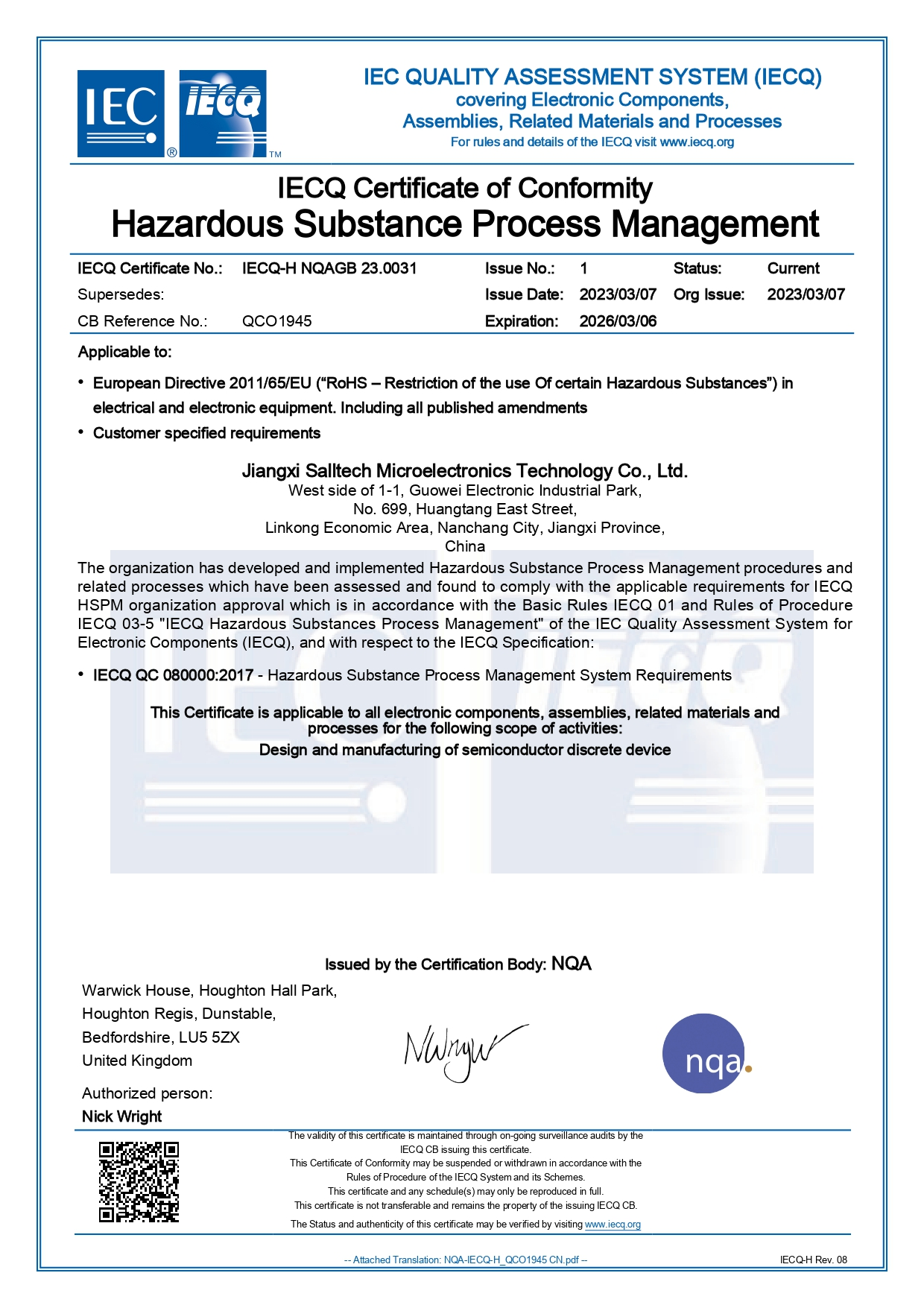 公司秉承“创新、成长、永续、责任”的经营理念,恪守“质量第一、客户满意;严进严出、绿色环保”的质量方针,成为国内领先的功率半导体与保护器件IDM公司。